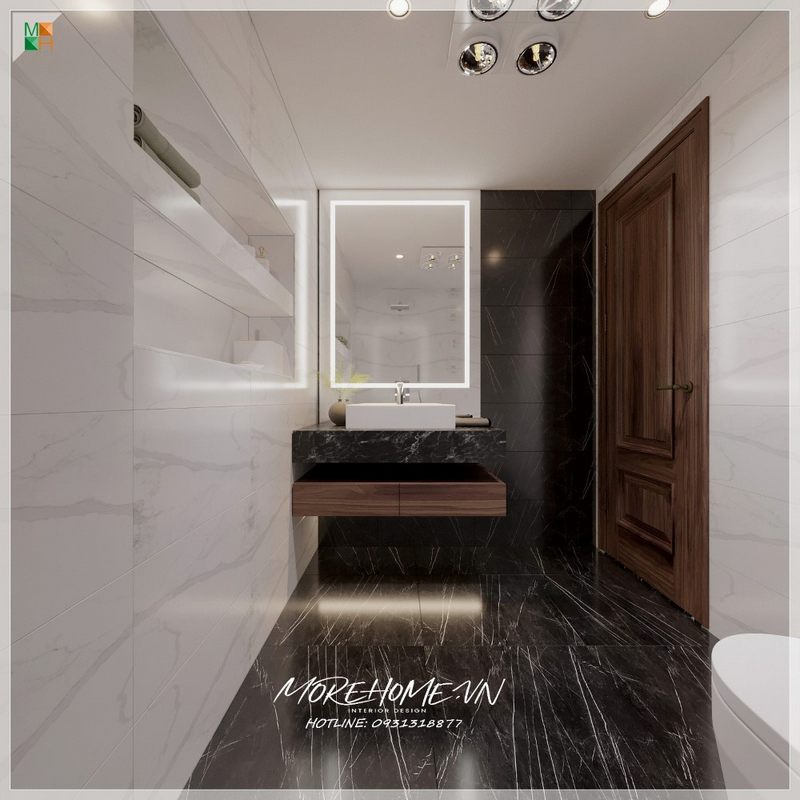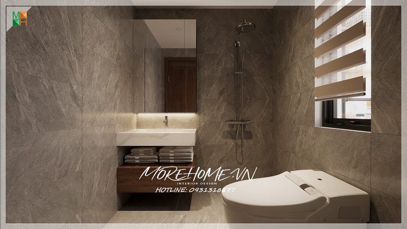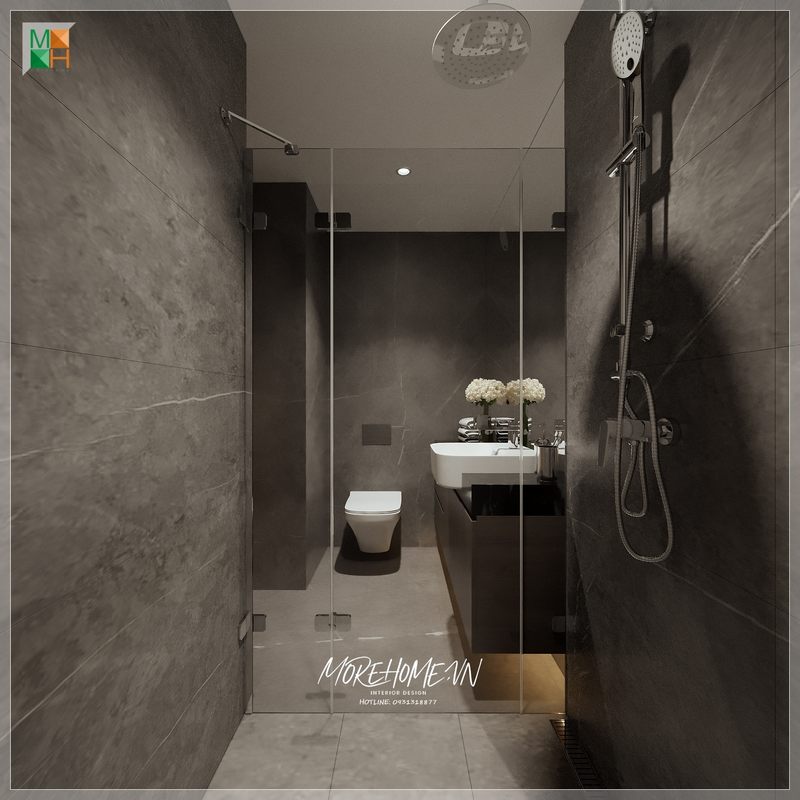 Với diện tích nhỏ phòng tắm được thiết kế nhỏ gọn vẫn đầy đủ tiện nghi, sang trọng.