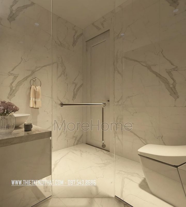 Mẫu thiết kế phòng tắm chung cư với nội thất vệ sinh cao cấp tạo nên không gian sang trọng, đẳng cấp