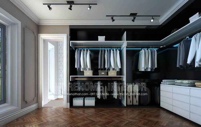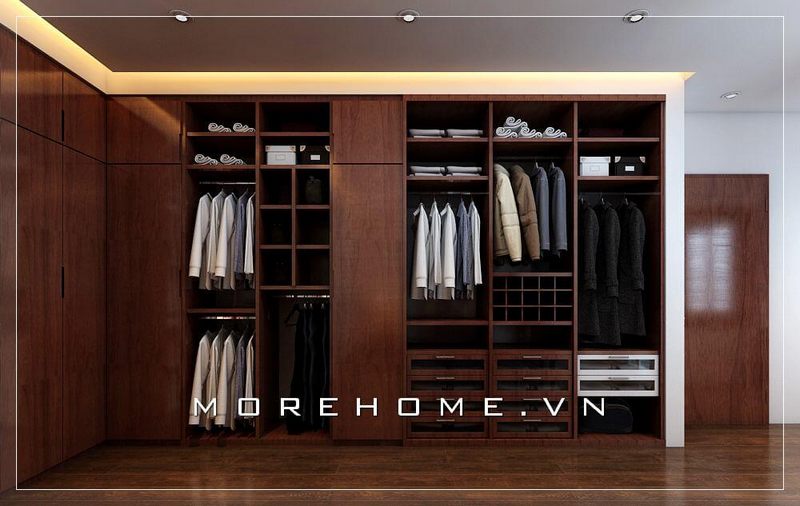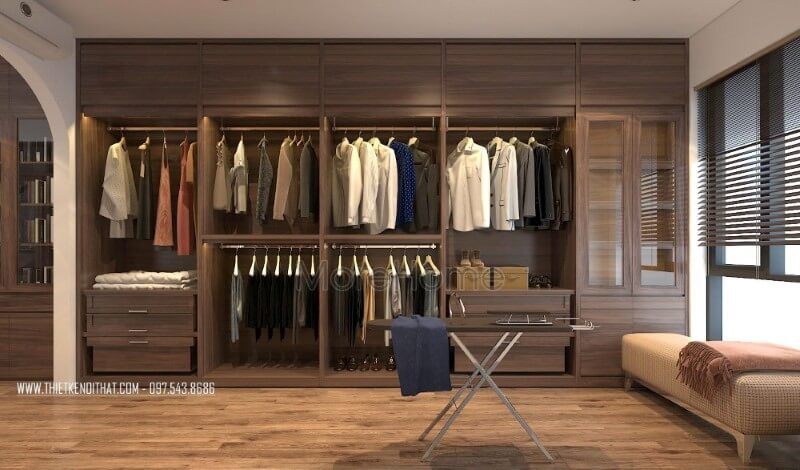 Tủ quần áo hiện đại thiết kế kế kịch trần âm tường mang đến sự thuận tiện và gọn gàng nhất cho căn phòng