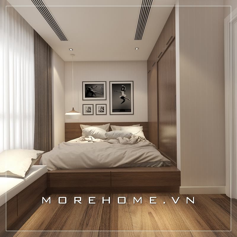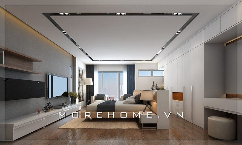 Mẫu tủ quần áo hiện đại thiết kế âm tường kịch trần rất thông minh và sáng tạo biến căn phòng ngủ chung cư trở nên sang trọng hơn.