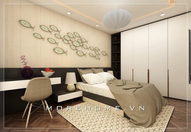 Tủ áo hiện đại được thiết kế âm tường, khắc phục được hạn chế về diện tích ở phòng ngủ chung cư nhỏ