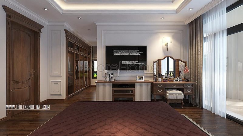 Mẫu cửa gỗ óc chó gỗ tự nhiên nhập khẩu ấn tượng, gam màu nâu tinh tế gợi nên nét trầm ấm và sang trọng cho cả không gian phòng ngủ