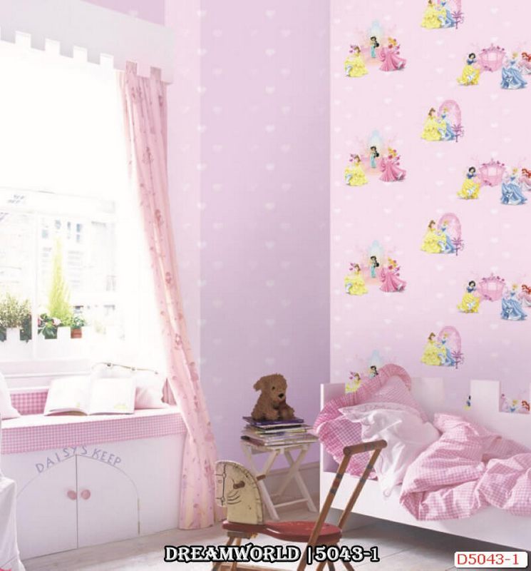 Giấy dán tường phòng bé gái họa tiết nhân vật hoạt hình công chúa màu hồng 5043-1 là sự lựa chon phù hợp cho các bé gái.