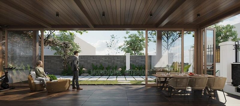 . Morehome sử dụng gỗ thân thiện với môi trường để tạo ra một không gian thưởng trà, hội họp ngoài trời đẹp và sang trọng.