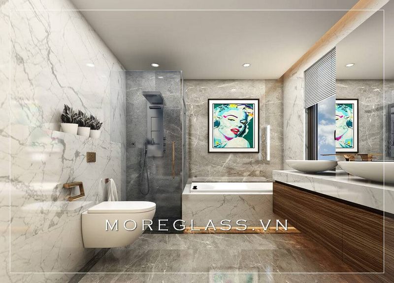 khách hàng Mẫu thiết kế nội thất phòng tắm cao cấp dành cho biệt thự, sử dụng đá ốp phòng tắm màu trắng vân mây để tạo nên sự sang trọng và cuốn hút khách hàng.