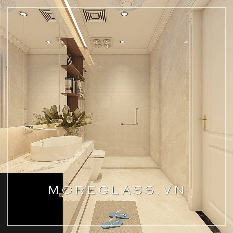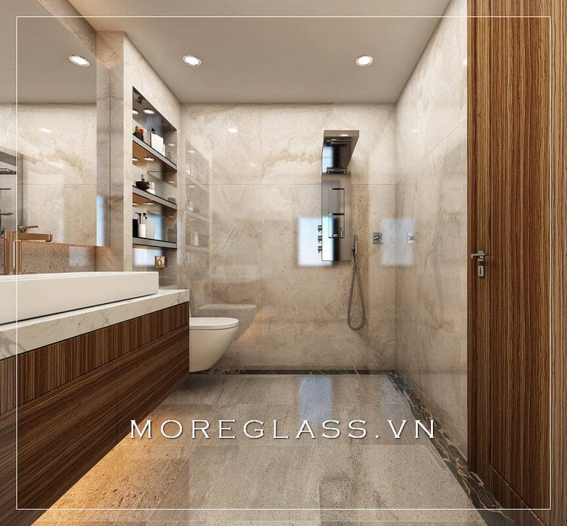 Vách tắm cao cấp giúp tạo ra một không gian riêng biệt cho phòng tắm và ngăn chặn nước không bị hất ra ngoài.