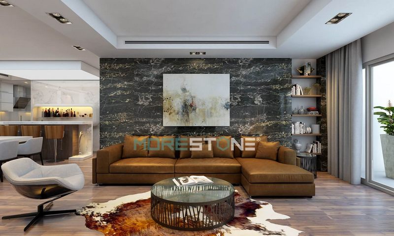 Các đá tự nhiên được sử dụng để làm ốp tường giúp tạo nên một không gian sang trọng và độc đáo cho phòng khách cao cấp.