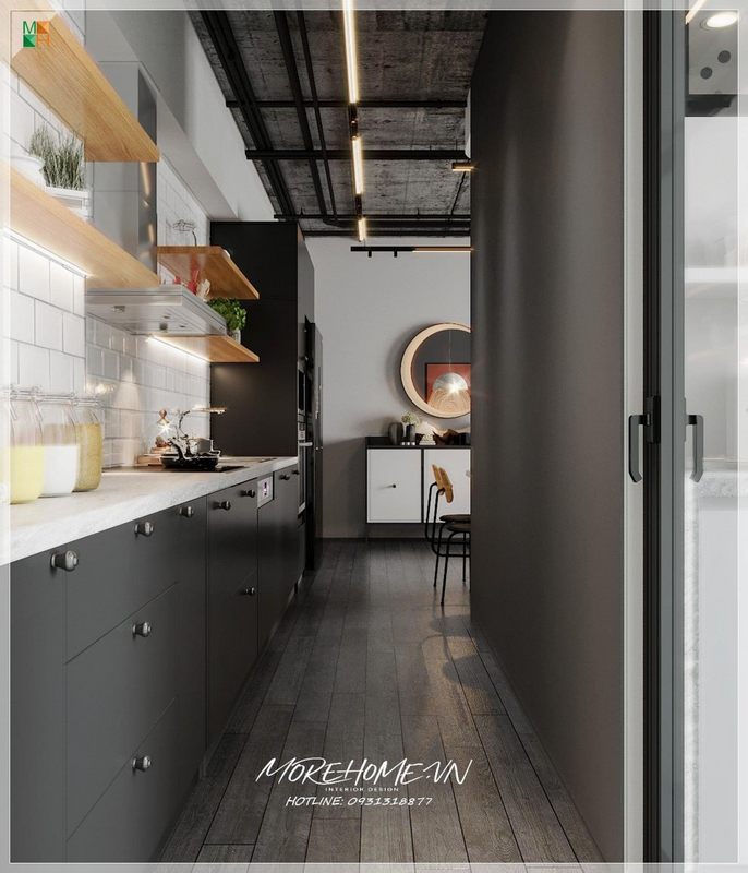 Để giúp không gian bếp nhỏ có vẻ rộng và sang trọng hơn, sử dụng kính ốp bếp là một gợi ý tuyệt vời. Màu đen là lựa chọn được ưa chuộng nhất của nhiều gia chủ.