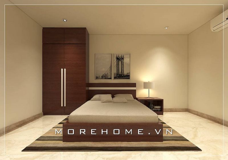 Tủ quần áo gỗ công nghiệp cùng màu sắc với nội thất khác trong căn phòng tạo nên sự đồng bộ và tinh tế cho không gian.