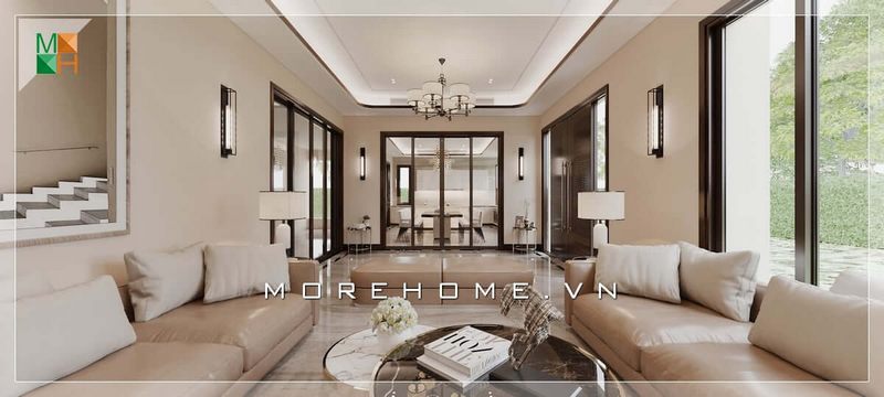 Các ô cửa lùa cánh kính được đặt tại không gian nối liền phòng khách, giúp phân biệt không gian và tạo sự sang trọng riêng biệt cho không gian nhà, giúp căn nhà trở nên tiện nghi hơn.